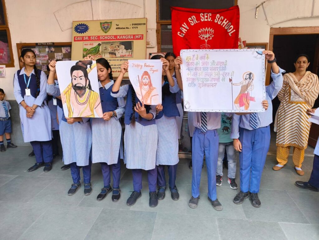 जीएवी सीनियर सेकैंडरी स्कूल कांगड़ा में परशुराम जयंती के उपलक्ष्य पर लोटस हाउस की तरफ़ से विद्यार्थियों ने भाषणों व पोस्टर मेकिंग के माध्यम से भगवान परशुराम जी ,जिनको